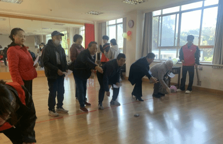 此次游艺活动围绕“趣味、安全、互动”原则,精心设置了跷跷板接球、轻拿轻放、篮球保龄球、欢乐弹力球、看谁套得准、纸板平衡术等六大特色项目。离退休教职工们早早来到现场,在工作人员与学生志愿者的热情引导下,有序参与各个项目。志愿者们全程贴心陪伴,有的为老同志讲解游戏规则,有的帮忙递水、搀扶行动不便的老人,青春身影与银发相映成趣,青春伴银龄的活动主题在互动中愈发鲜明。整个活动现场暖意融融、欢声笑语不断,老同志们或专注投入游戏,或与老同事畅谈近况,脸上洋溢着幸福的笑容,在轻松愉悦的氛围中尽享节日时光。