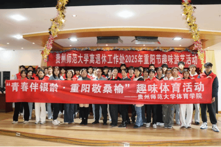 岁岁重阳,今又重阳。为大力弘扬中华民族敬老、爱老、助老的传统美德,切实丰富广大离退休职工的精神文化生活,2025年10月28日,贵州师范大学离退休工作处与体育学院携手开展了“青春伴银龄 重阳敬桑榆”游艺活动,让老同志们在欢乐的互动中感受节日温暖与学校的关怀。